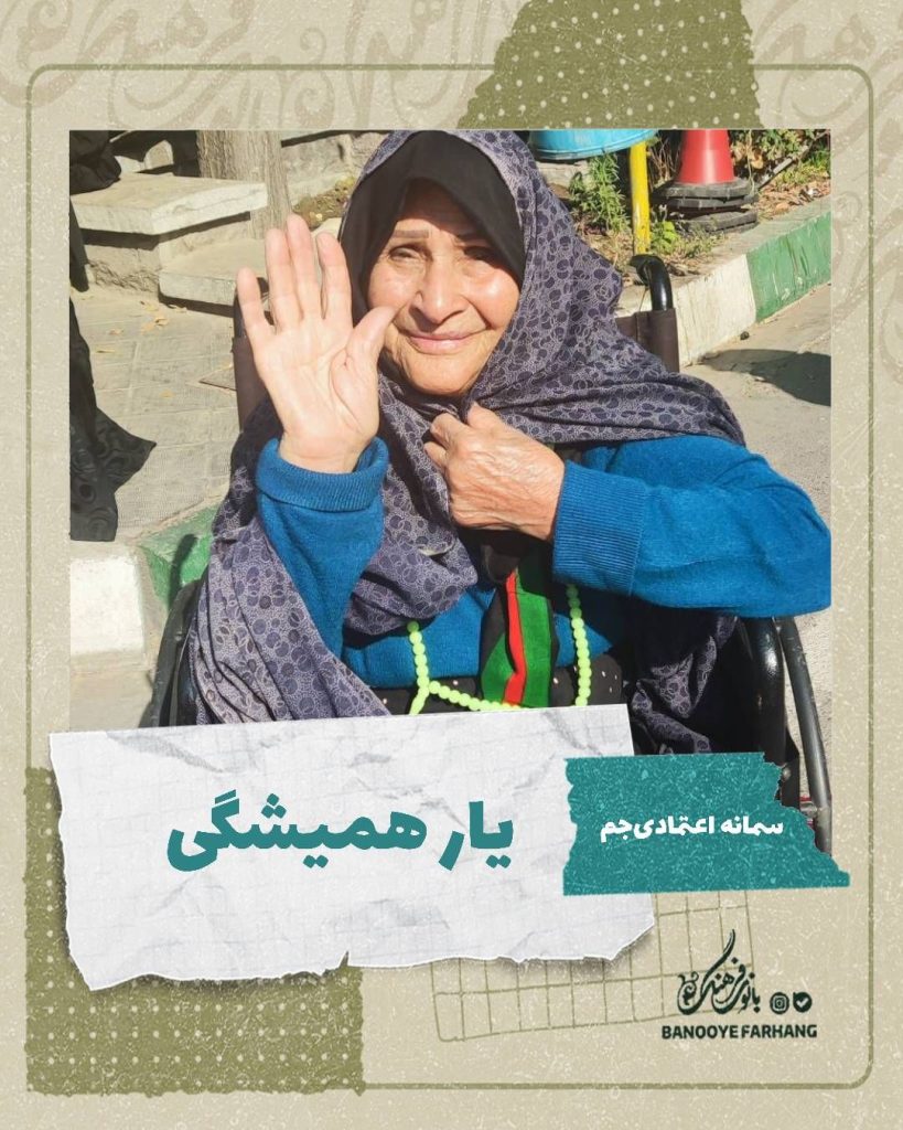 یار همیشگی بتول پارچهلکی، با موهای سپید و چهرهای که نشان سالها زندگی را داشت، روی ویلچر نشسته بود. هر هفته، با کمک خانمهای هممحلهایاش از مسجد الهادی مجیدیه به نمازجمعه میآمد. نود سال داشت، اما نگاهش هنوز پرانرژی و دقیق بود. دستهایش که کمی لرزان بودند، انگار هر کدام داستانی از سالها تلاش و ایستادگی را حک میکردند.